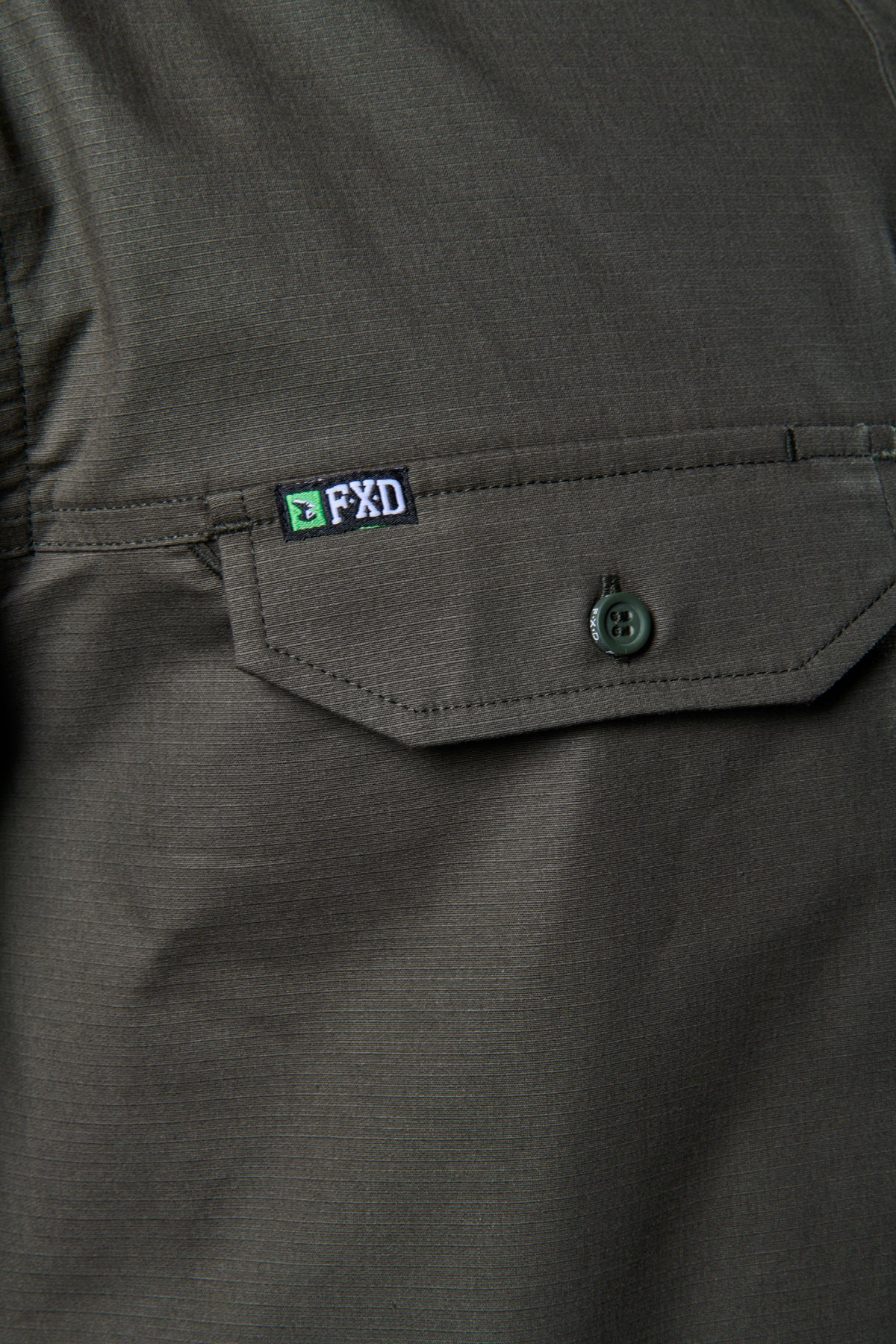 FXD SSH.3 VENTED STRETCH SHORT SLEEVE WORK SHIRT IS BUILT USING A DURABLE 150GSM LIGHTWEIGHT STRETCH RIPSTOP AND FEATURES A MESH COOLING VENT AT BACK YOKE FOR IMPROVED AIRFLOW